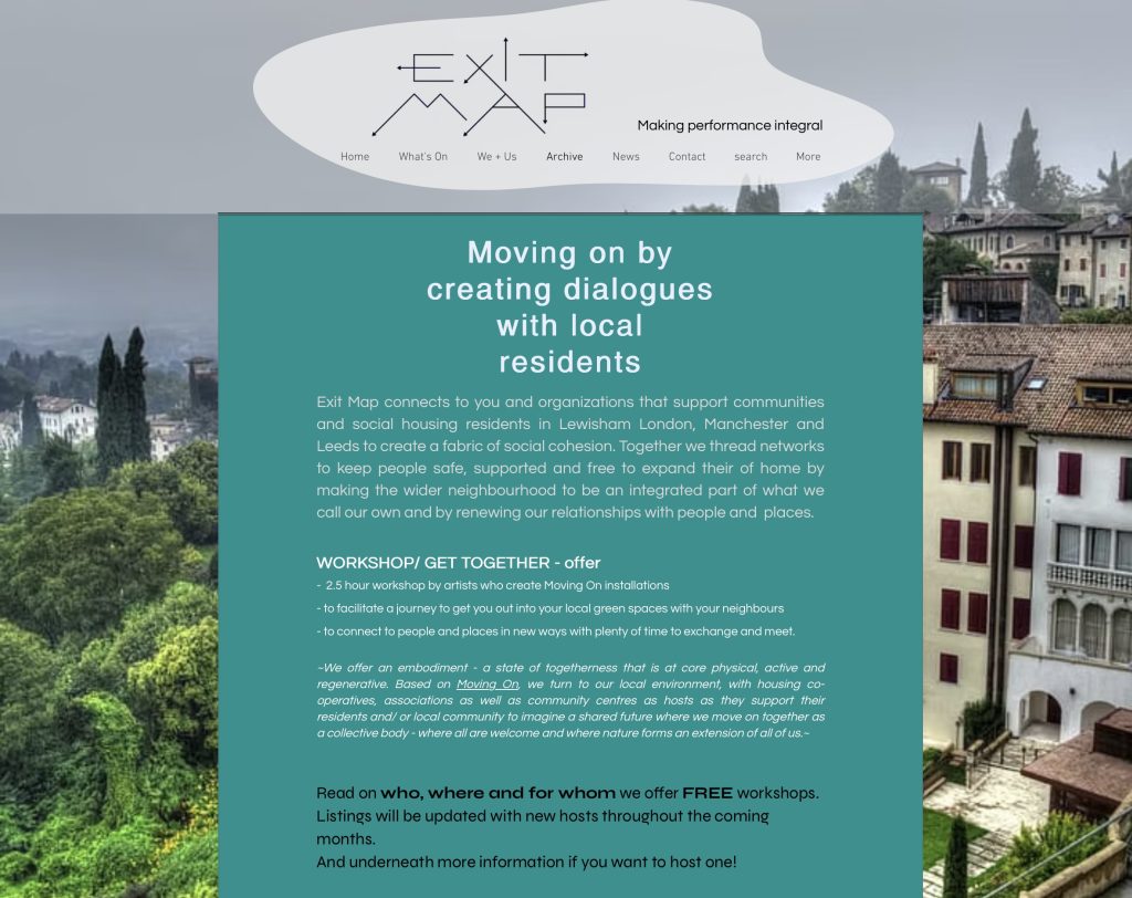 Moving On by Exit Map serves to reconnect body to nature. Via a radio sound installation or via headphones, you can listen to somatic audio guides that were conceived by dance and sound artists to inspire ways of being with the more-than-human. Moving On is created by a community of artists for a community of people to breathe deeply and move freely with our surroundings and become part of a wider ecosystem where dances emerge as a state of aliveness and connectivity.